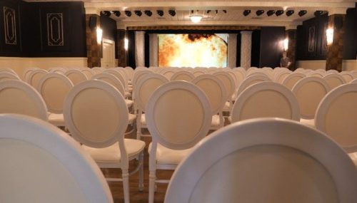 “Yes. You can rent the theater for events or even something to do with a theater type of thing. Or, you know, it’d be great to show pictures at a wedding or different things like that. The showroom is across the hall… and then the room we’re sitting in now, we’re calling the promenade… and the promenade can also be rented out as well.”